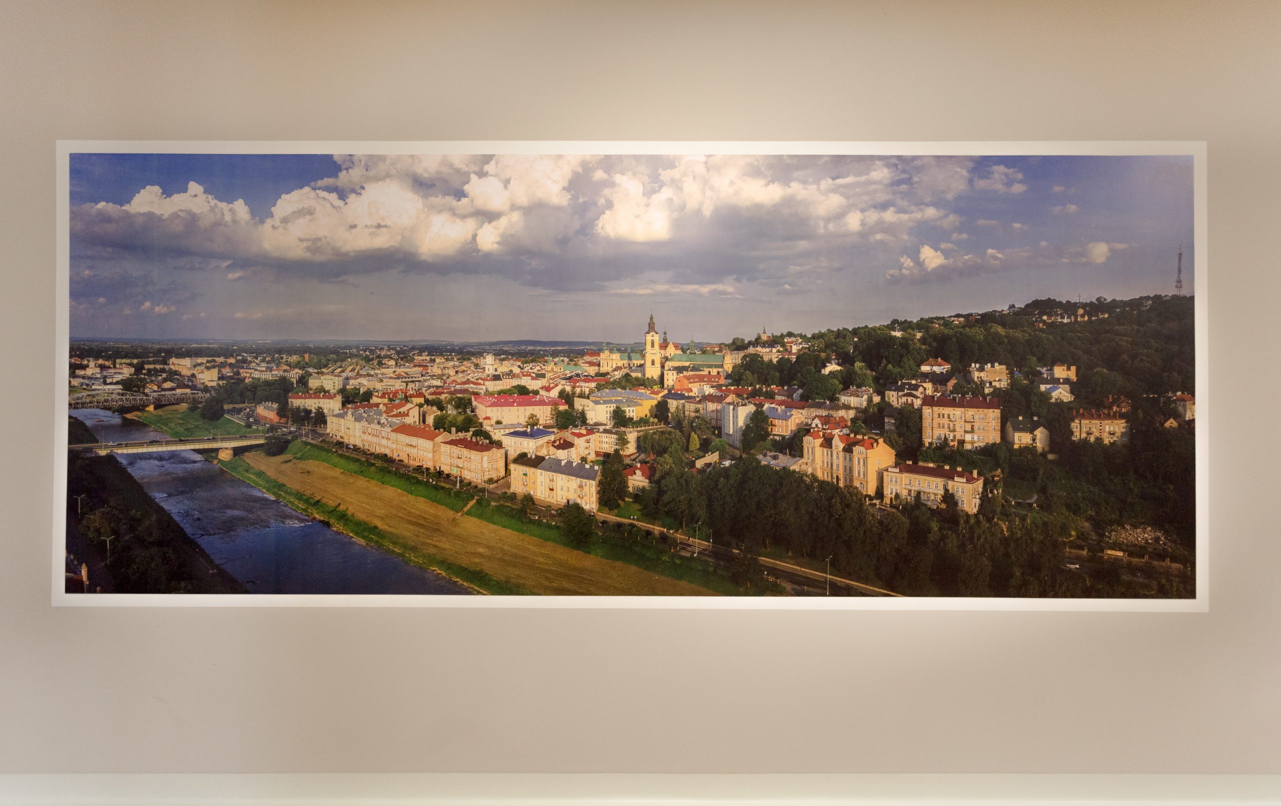 Na pierwszym planie zabytkowa świątynia zlokalizowana nie opodal centrum przemyskiego rynku na tle kopca Tatarskiego w mieście Przemyśl. Realizacja wyszła oszałamiająco i zaciekawia każdego kto przechodzi obok. Wykonanie takiego druku wymaga dużej precyzji i kreatywnego podejścia 🙂